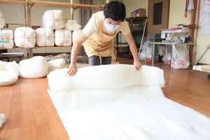 当店では、原綿の仕入れから製綿・仕立て・販売まで
