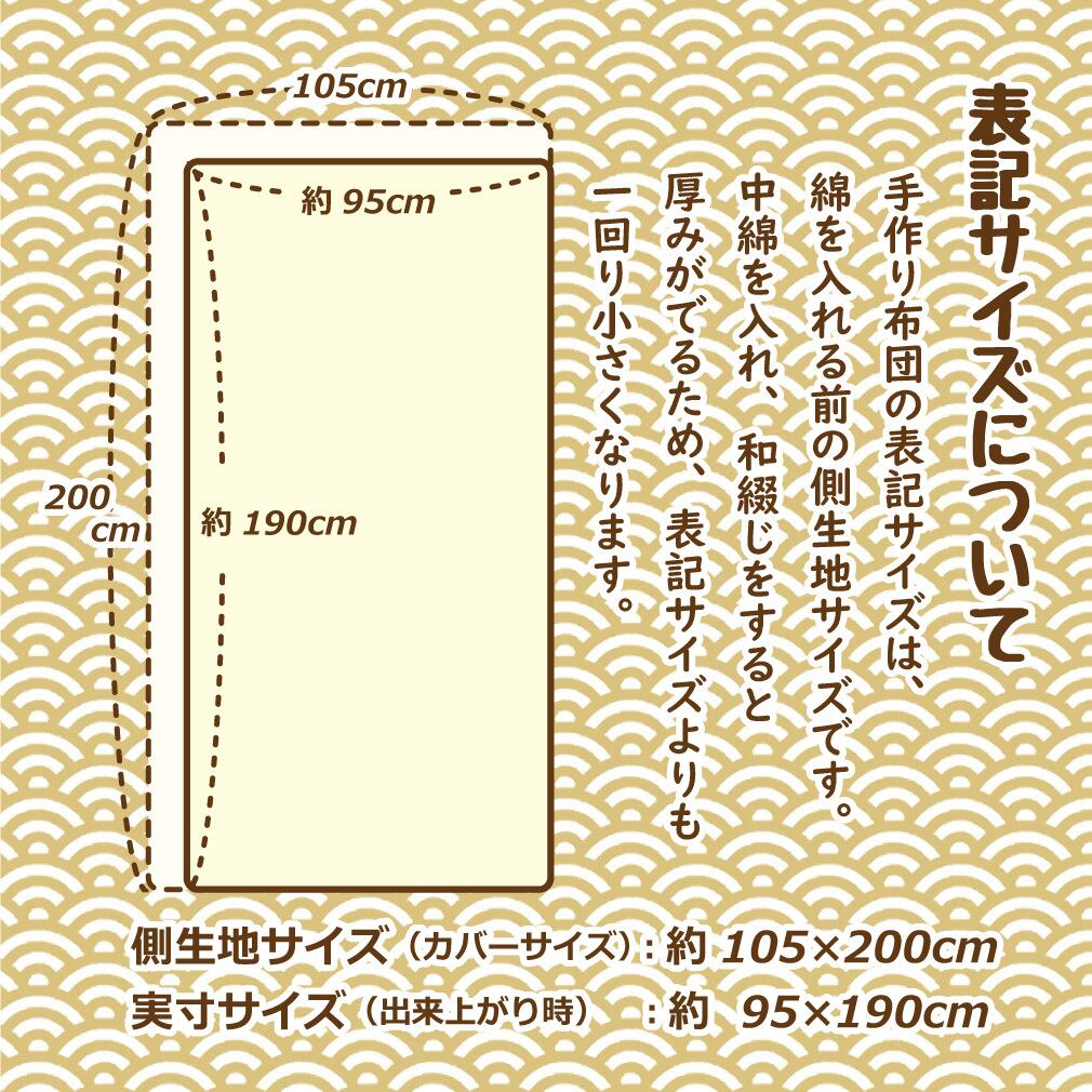 ● 側生地サイズ:100×200cm(出来上がりは綿を入れるため少し短めになります)