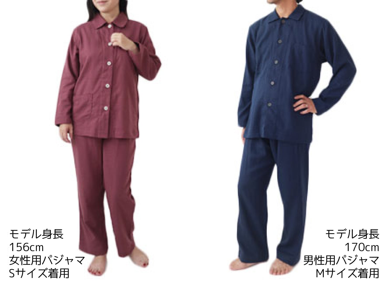 2枚の綿100%ガーゼ生地をところどころ点で、結合して織られています。点結することで空気の通り道が多くでき、熱や汗を放出、通気性抜群です。また、2枚のガーゼ間に空気層ができ、ほどよい保温性があり夏はサラっと爽やかに、春秋もフワっとぬくもりを感じて頂ける年中使えるダブルガーゼパジャマです。