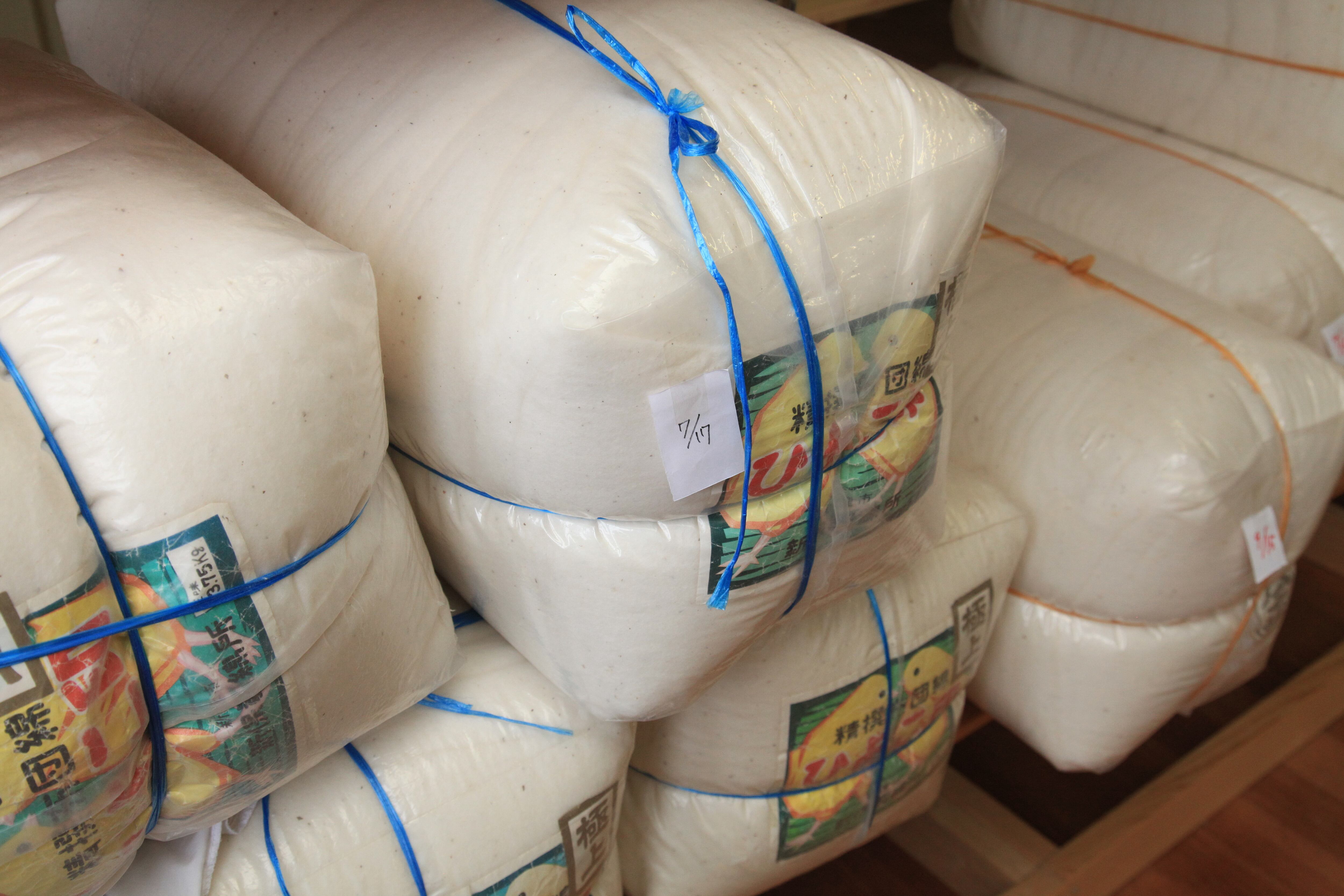 当店では、綿の原料となる原綿を直接仕入れており、製綿作業・ふとんの仕立て・販売を一貫して行っております。